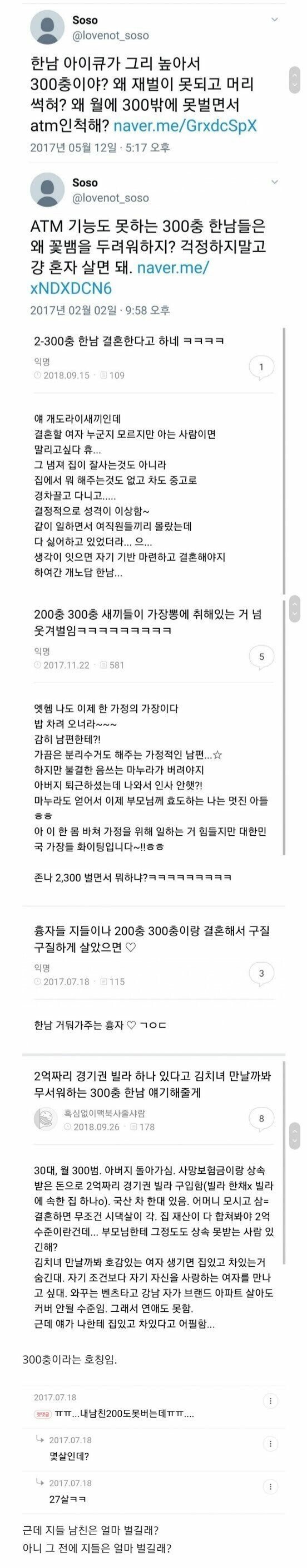 300충이랑 결혼하면 당연히 힘들지 지는 전업주부하면서 사고싶은 옷사고 애키우고 하면 감당이 되긋냐 ㅎㅎ 예전 거래처 현장 소장님은 집에다가 500갖다주고도 바가지 긁히던데 존나 점심에 짱개 싼데 있나 찾아보고 다니고 ㅋㅋㅋ