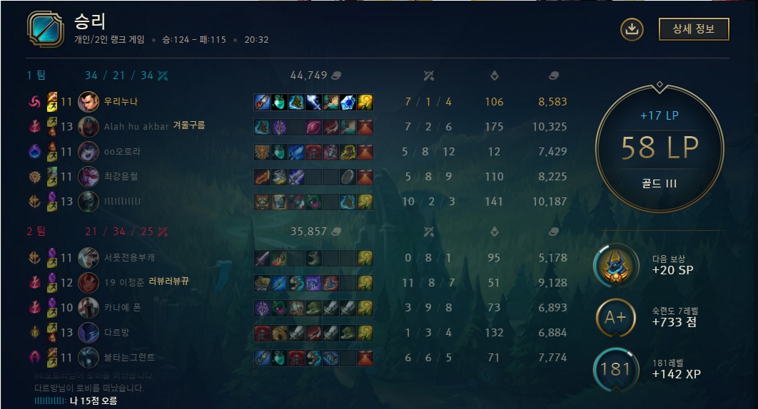 물론 내가 이겼기에 올렷지 졌으면 안올렸음.헤헤