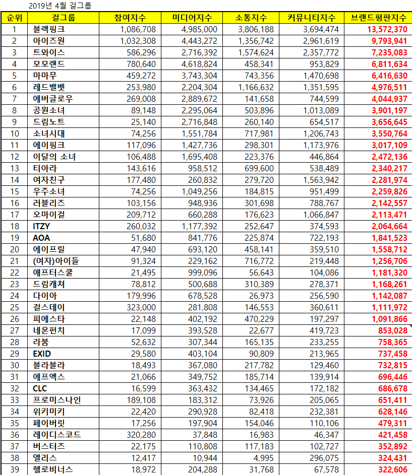 트와이스랑 블랙핑크랑 레드벨벳 탑티어라는데