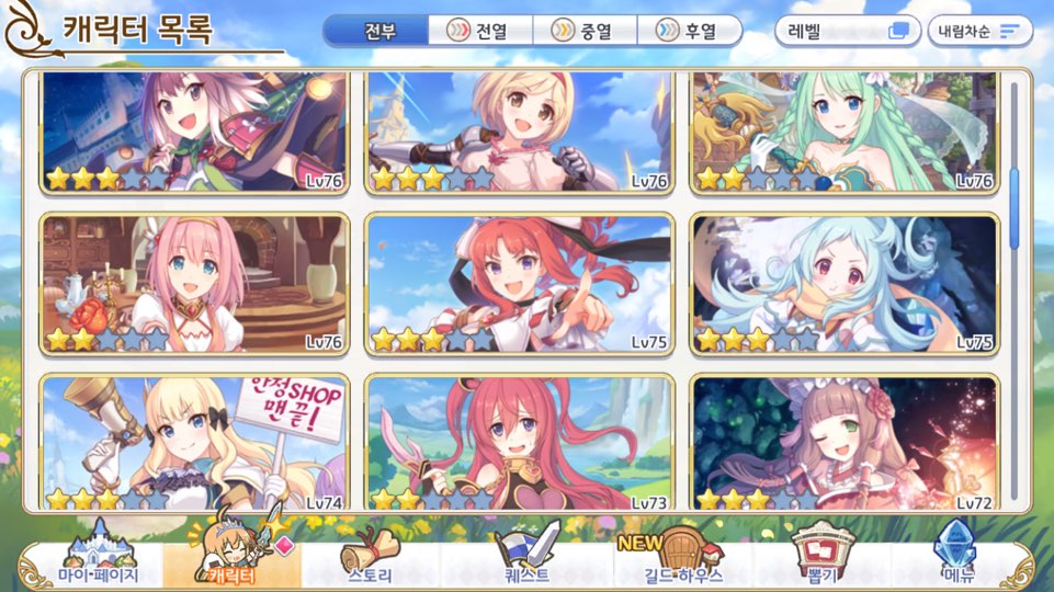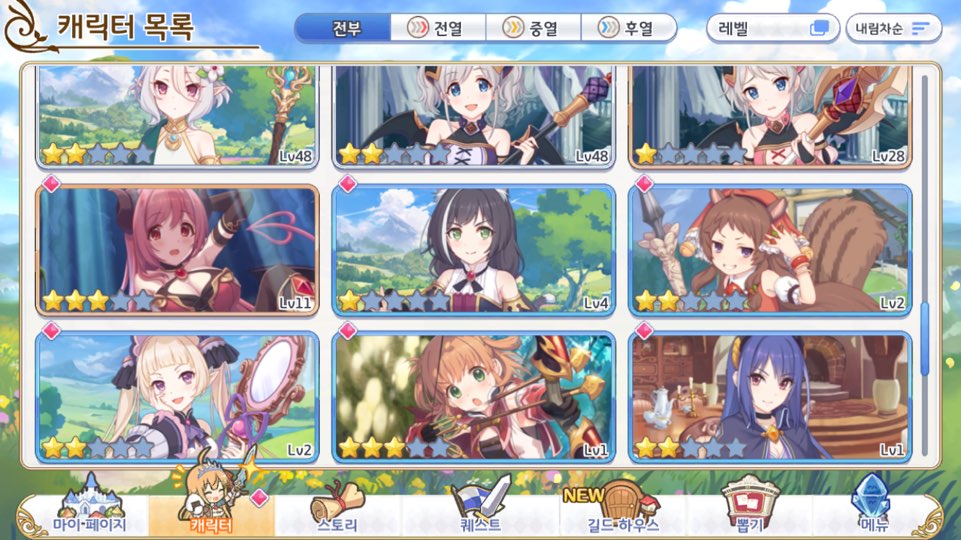 캐릭터는 안나,니논,아리사 빼고 다 모았음