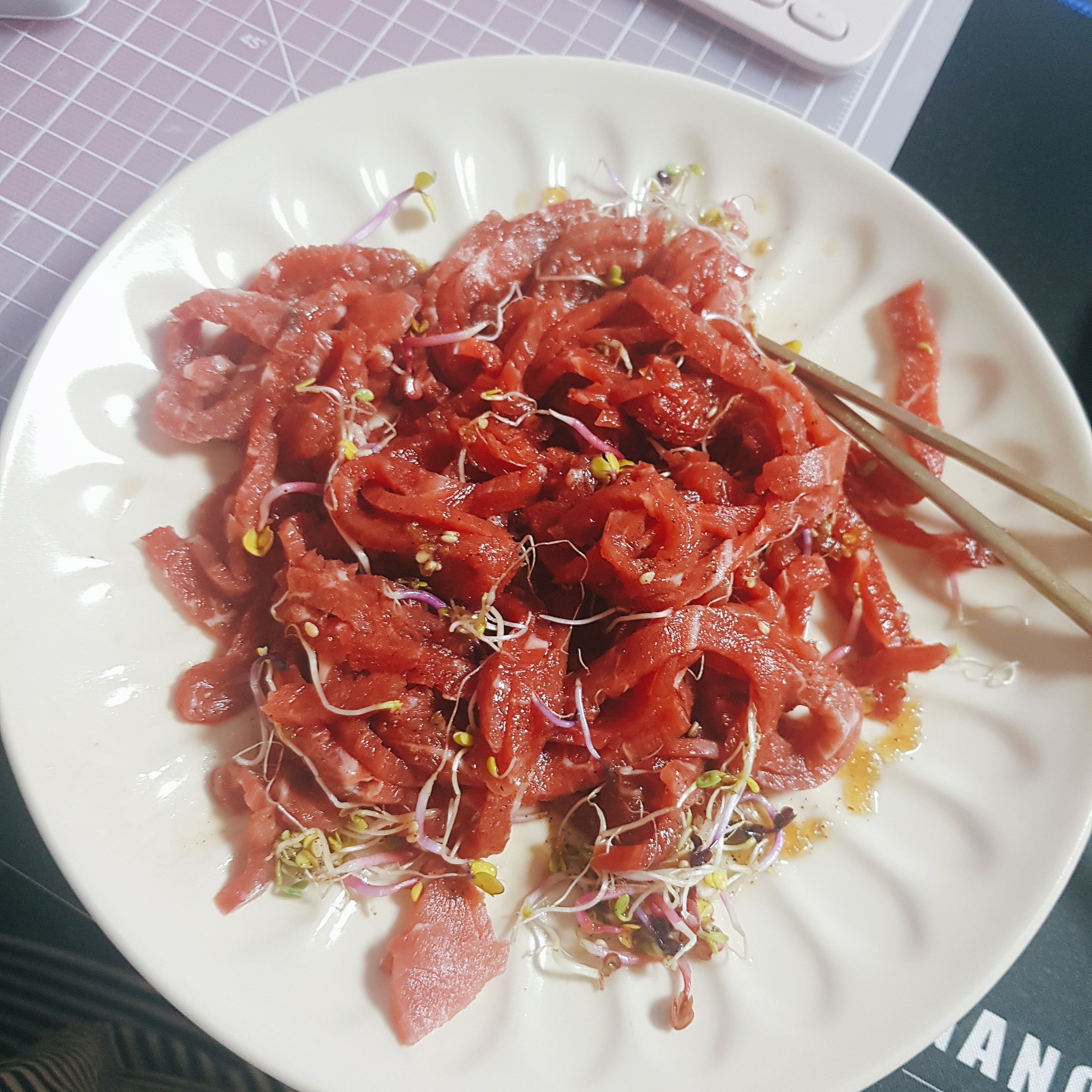 어머님은 육회를 가져다 주셨고나.