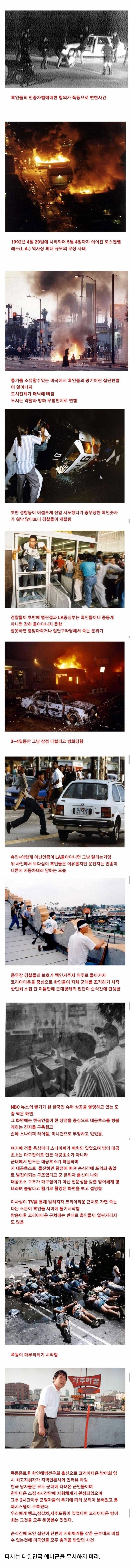 근데 저거 미국에서 반한감정 조장해서 흑인들이 백인 보다 한국인을 겨냥하도록 만든 좆같은 사건이었고 경찰들은 백인들이 사는지역만 방어 해서 코리안 타운을 공격하게 만든 사건이고 흑인 새끼들은 인종차별에대한 분노를 다른 인종차별로 풀어버린 존나 좆같은 사건이라고 꺼무위키에서 본듯