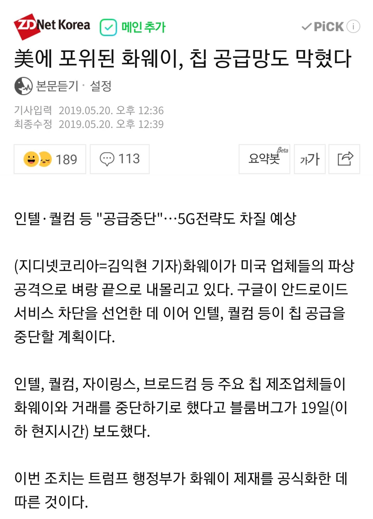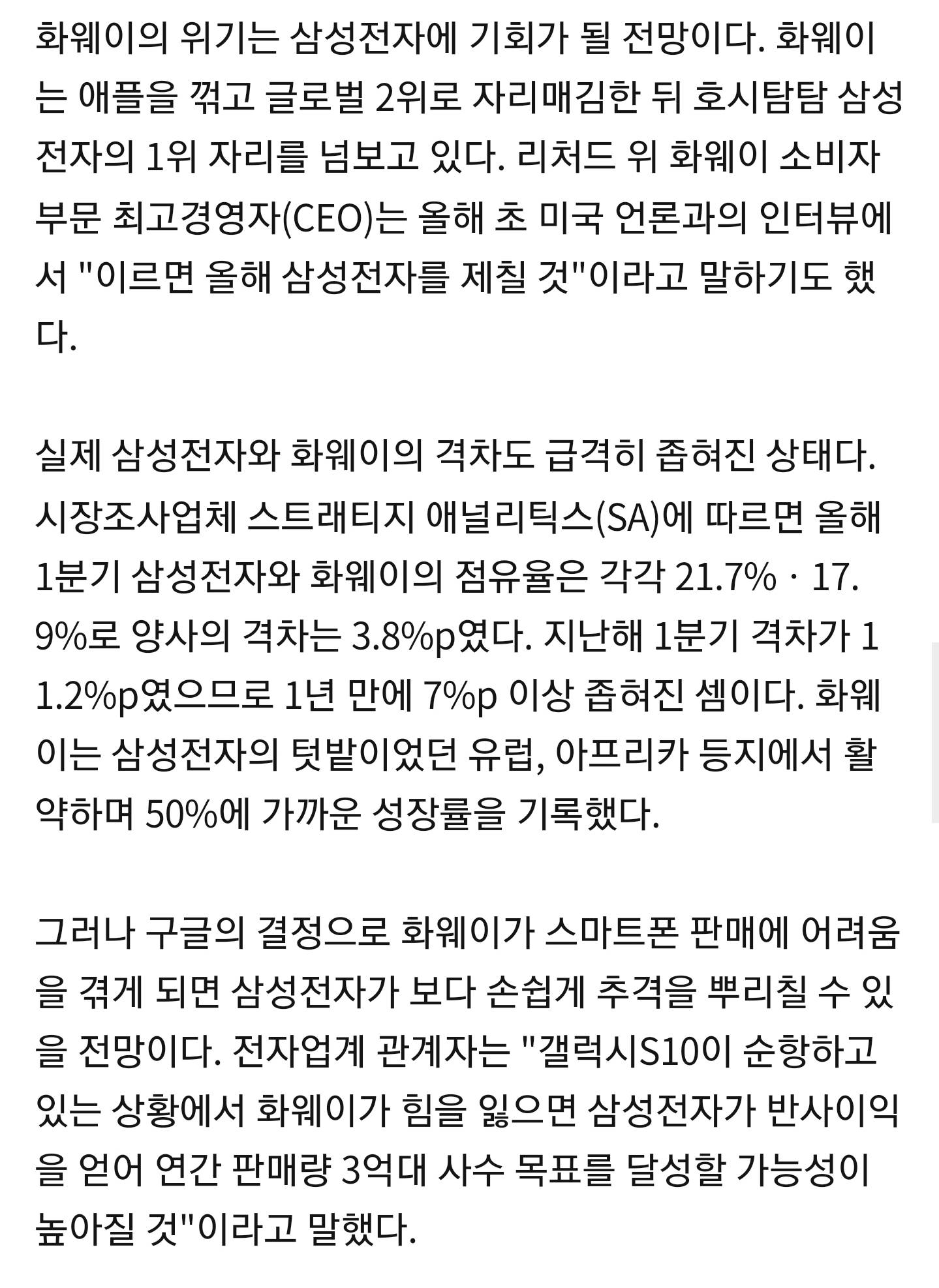 큰 정도가 아니라 해외 시장의 경우 화웨이는 전멸이라 봐야 함