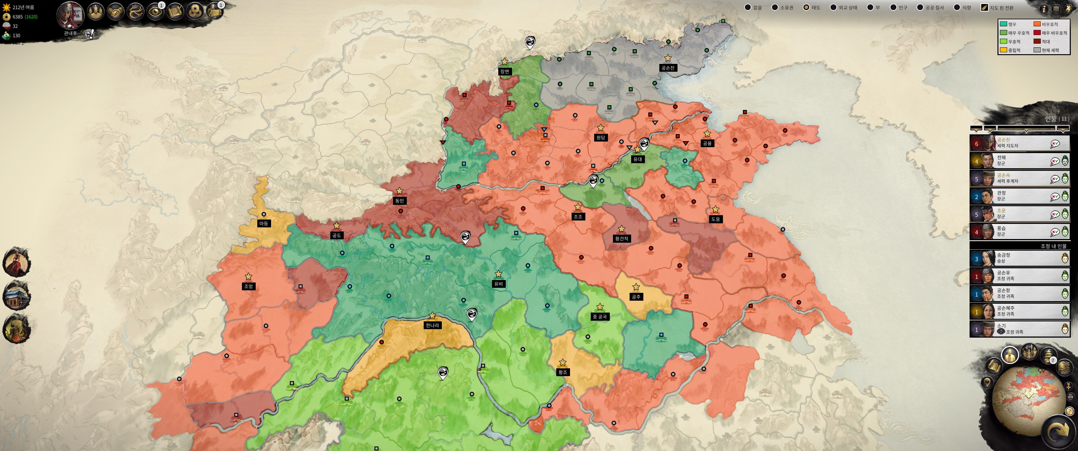 구석에 처박혀서 힘만 길러봤자 먹는 자원이 달라서 뽑히는 병력수가 다름 그리고 점령지가 많을수록 관직 올라가서 군단수도 늘어남