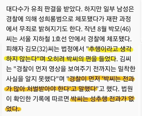 경찰님이 실적 1건 더 올리기 위해서라면 무고한 남자 한명 인생 조지는거야 별것도 아닌거죠. 심지어 법정에서 무죄판결 받아도 기소됐다는 것만으로 이미 인생 조진 뒤임.