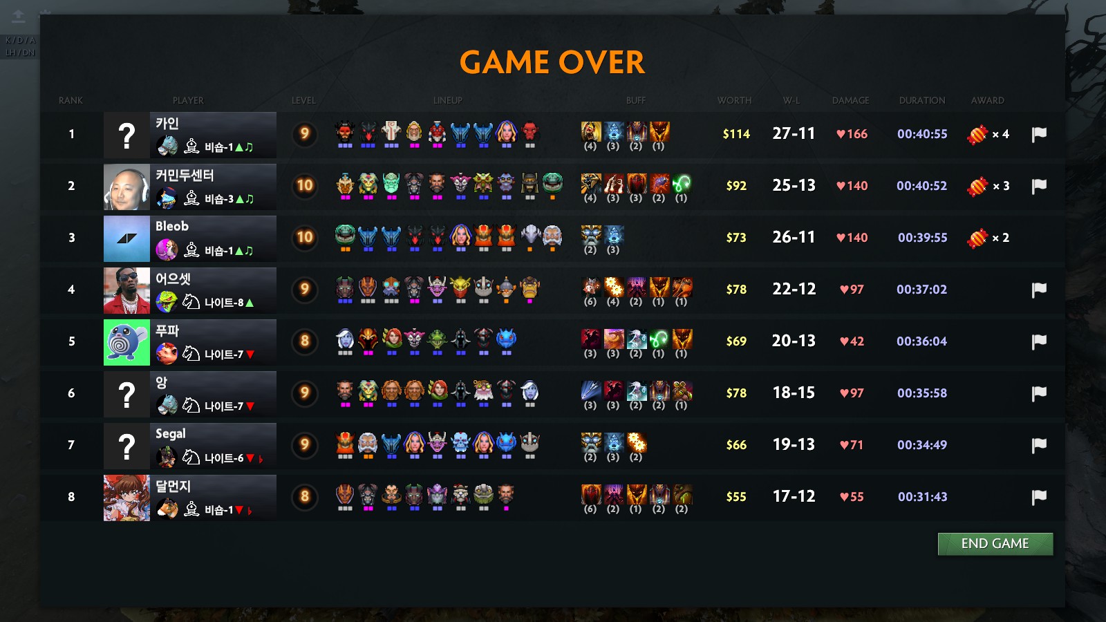 비록 1등은 못했지만 스벤 터지고 쉐핀이 스킬쓸때 진짜 쌀뻔ㅋㅋ