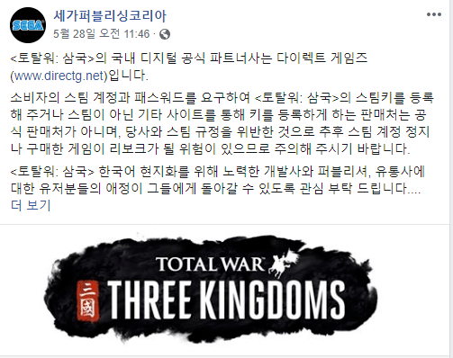 또한 세가때 문제가 되었던건 키를 구입해도 등록자체가 안되는데 그걸 등록하려면 스팀계정 국가 바꾸고 2시간 후에 vpn 써서 등록 하는거라 방법이 복잡한 반면 이번 삼탈워는 걍 시디키만 구매하면 되서 세가때 상황과 다르고