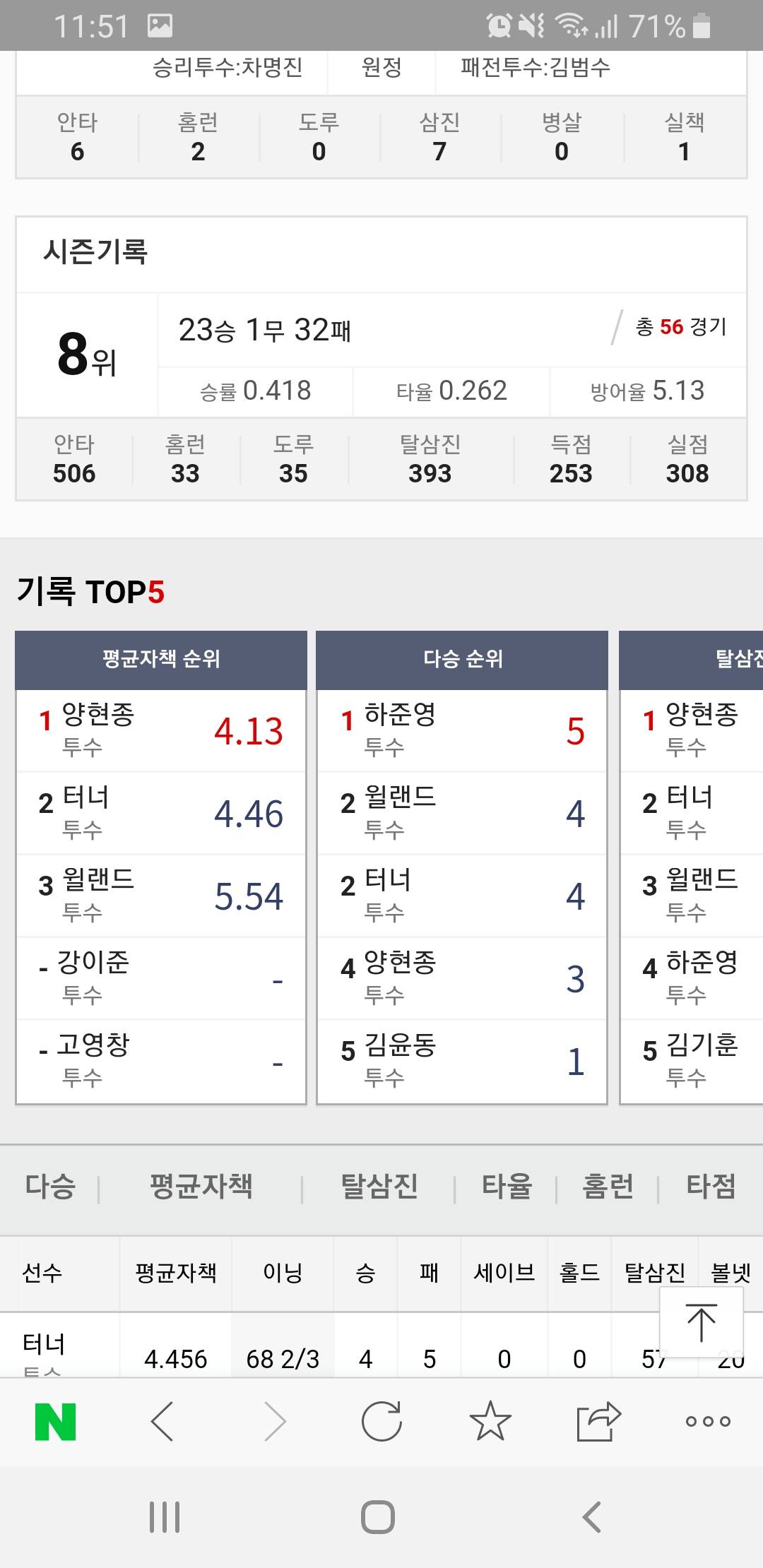 중간계투가 팀다승1위임