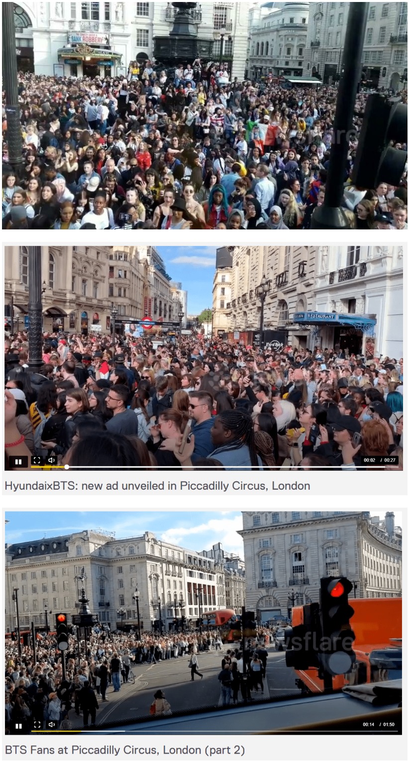 그래서 현대자동차가 전광판으로 방탄소년단 영상 틀어주는데 그거 보려고 저렇게 모인거