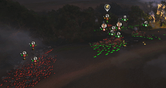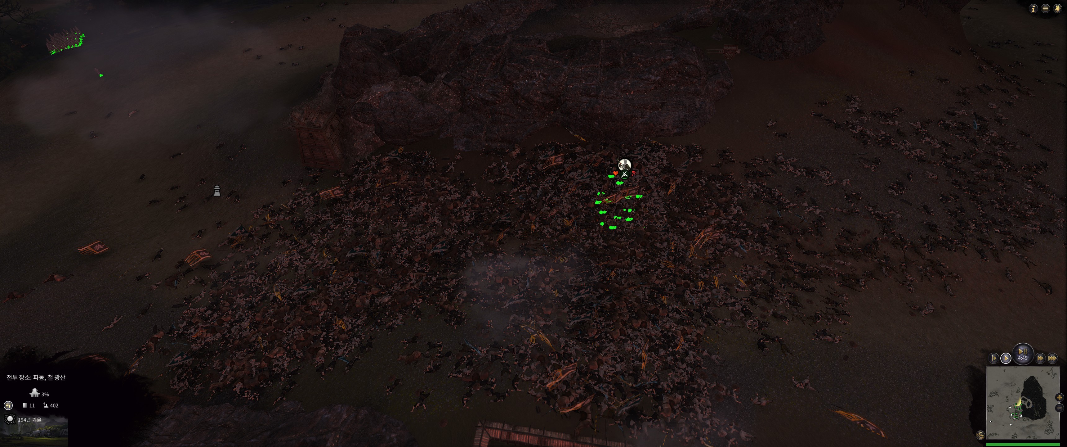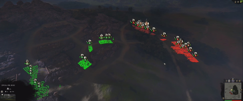 그리고 저 뒤에 입구 닫으려고 이동 중인 내 보병과 적 궁병을 요격하려는 내 기병들