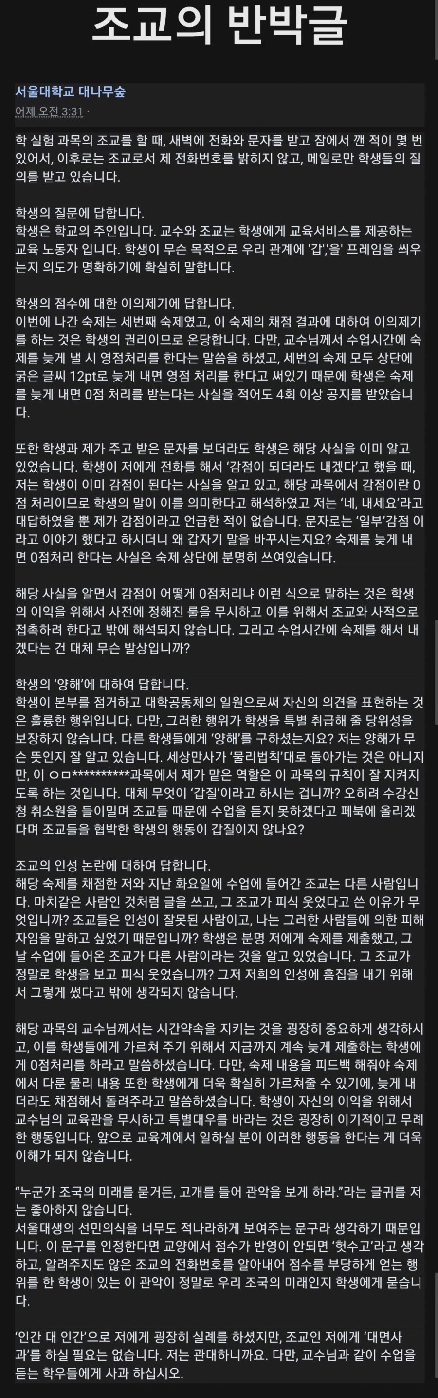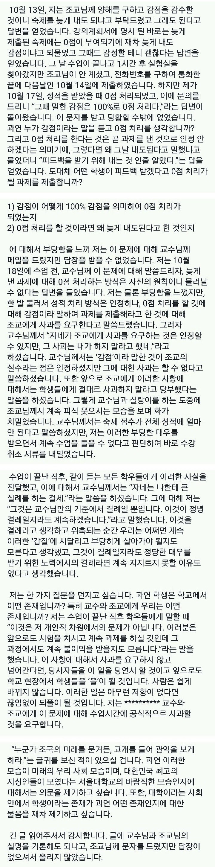 교수나 조교따위에 인성을 기대하지 말지어다