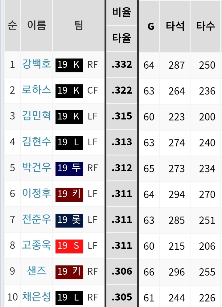 외야빠따순위가 이런데 하위권이라면 이건 재폭이 저주를 건게 부명함
