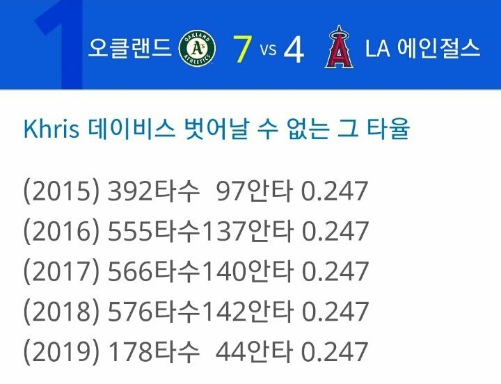기복없는건 좋은데 타율이 애매해..