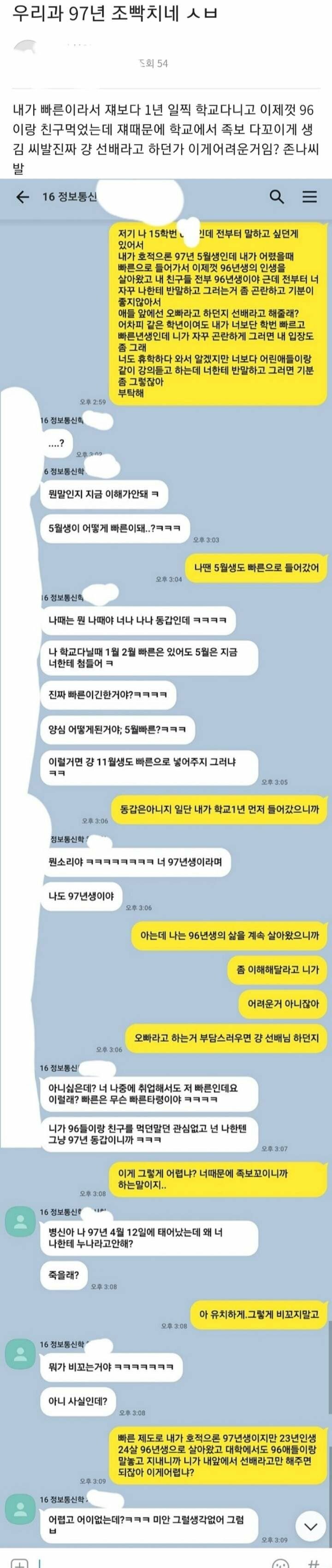 어차피 살면서 도움 안될 사람들인데 ;;뭐저렇게까지 하냐 나중에 후회할듯 선배부심도 웃기고 빠른년생 부심도 웃기고
