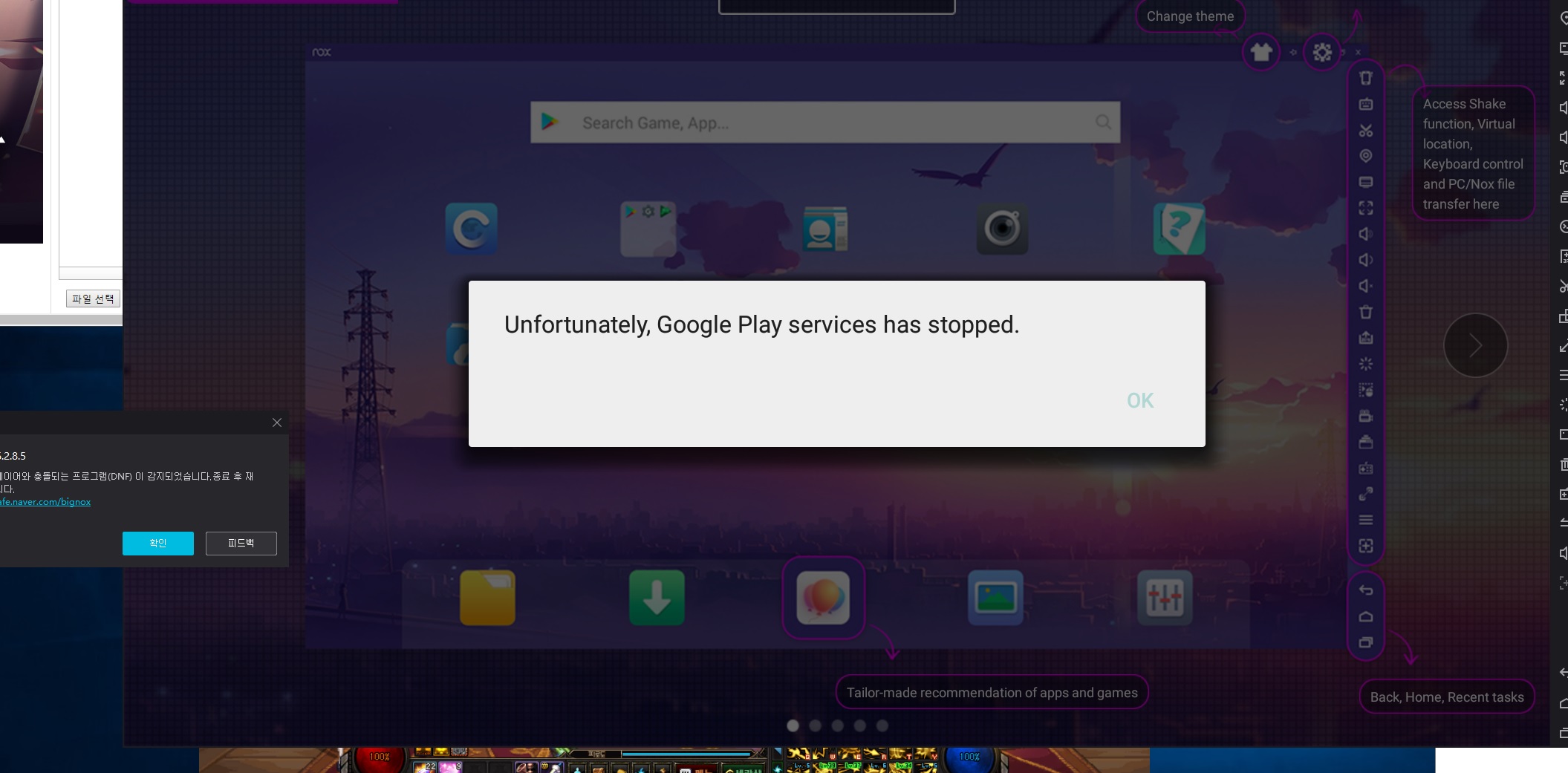 1000--v6.2.8.5 녹스앱플레이어와 충돌되는프로그램(dnf) 가 감지되어서 종료하고 재실행하라는데 뭔소리지..