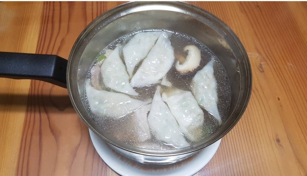 재료 : 삼겹살, 표고버섯, 냉동만두, 간장, 파, 다진마늘