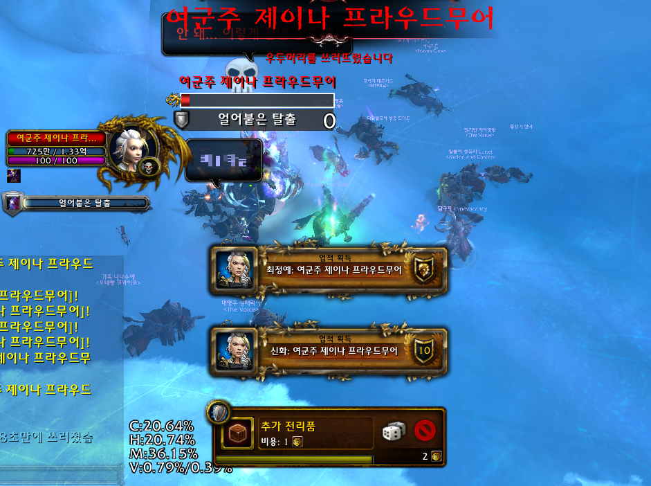 스토리가 얼라이언스가 호드마을 뿌수고 잔달라 왕 살해 후 후퇴하는 과정에서 메카토크랑 제이나가 유저들이 빠져나갈수 있도록 길을 막아서는걸 유저가 잡는 거. 메카토크는 후퇴 돕는과정에서 중상입고, 제이나는 피 5% 되면 도망감.