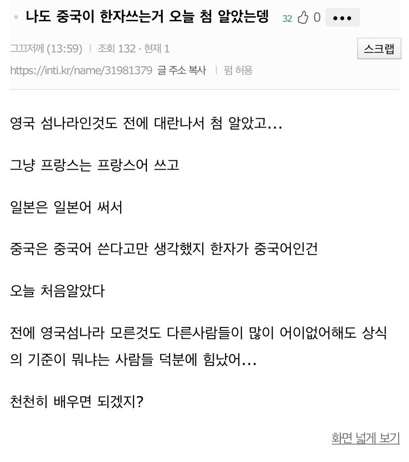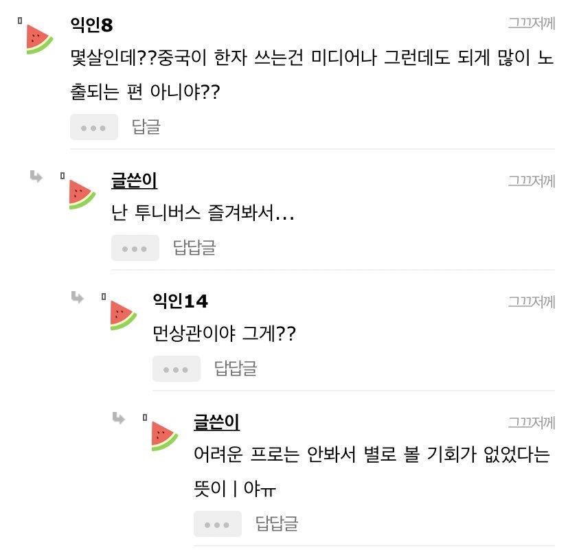 나이 어린가보다요즘은 정규과목에 헌자 없나봐