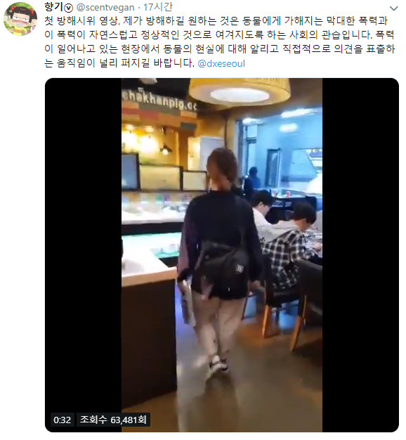고기는 불쌍하고 저기에 생계 달린 사람들과 그 가족들 인생은 뒤지던 말던 전혀 안 불쌍하냐?
