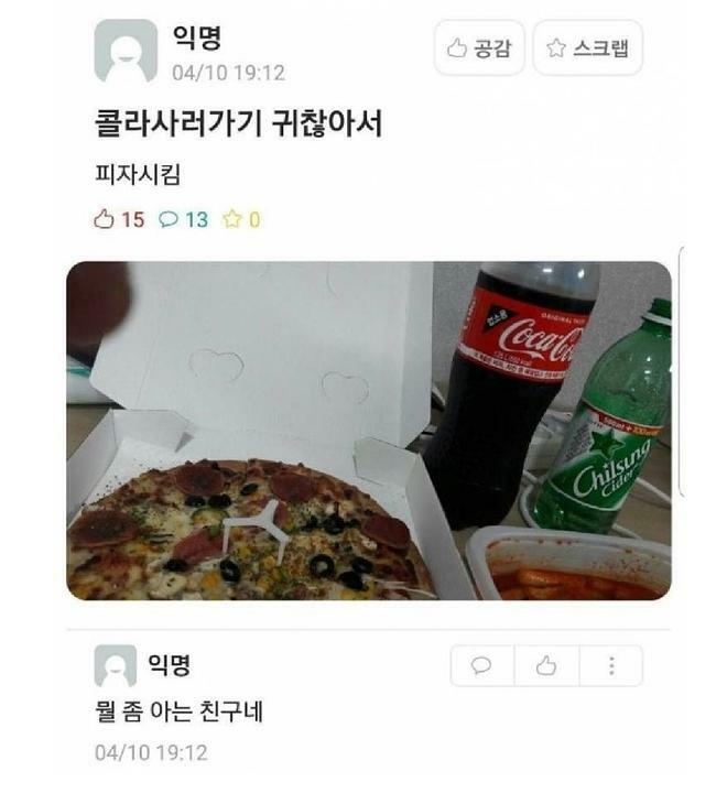 콜라캔 한박스정도는 집에 늘 있어야 하는거 아닌가?