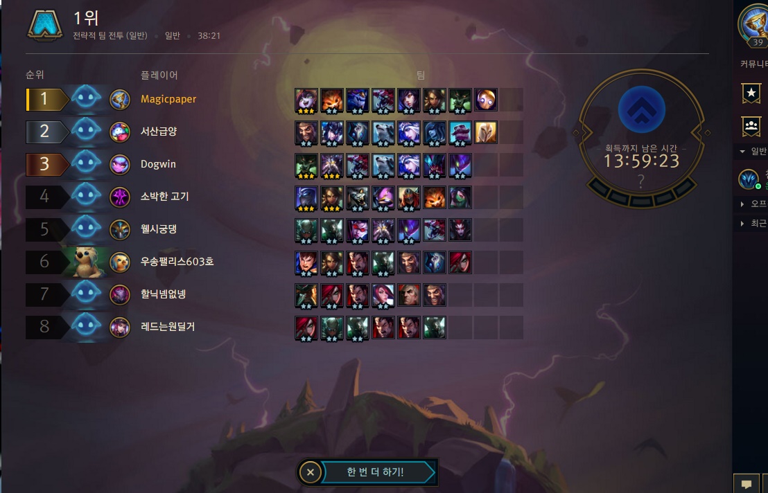 마지막에 드븐 올인조합이라 존나 새로고침 눌러서 블츠 뽑아서