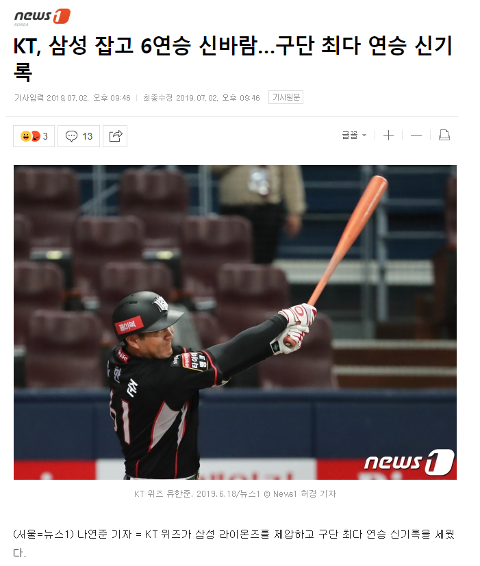 방금 스포츠뉴스 보고 오올 크트6등 6연승이네 하고 있었는데 이러다 창단 첫 플옵 가는 거 아님?