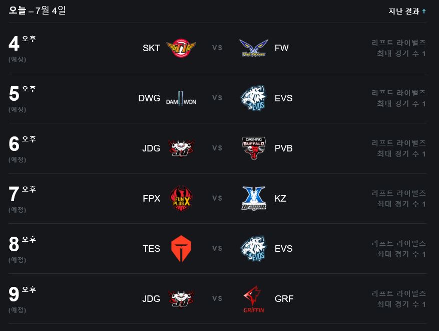 경기예정은 4시5시7시9시입니다 순서대로 슼 담원 킹존 그리핀
