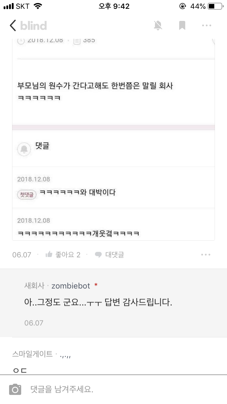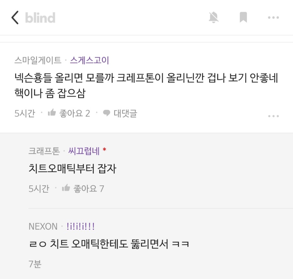 블라인드에서 타사직원이 이번 사태에 대해 까니깐 디씨에서 왔냐면서