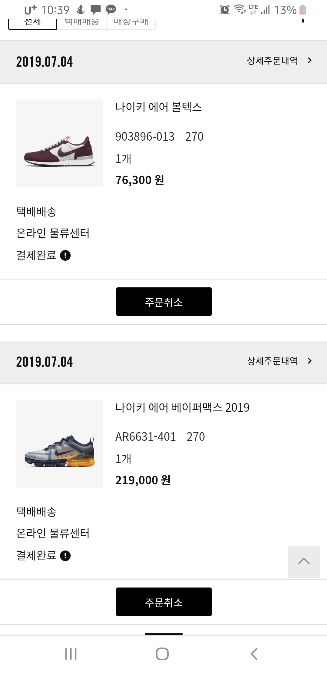 완전개미친새끼// 농구화는 6개월내에 줌에어 터지면 100% 환불 해줬는데 베이퍼는 어떤가 모르겠다