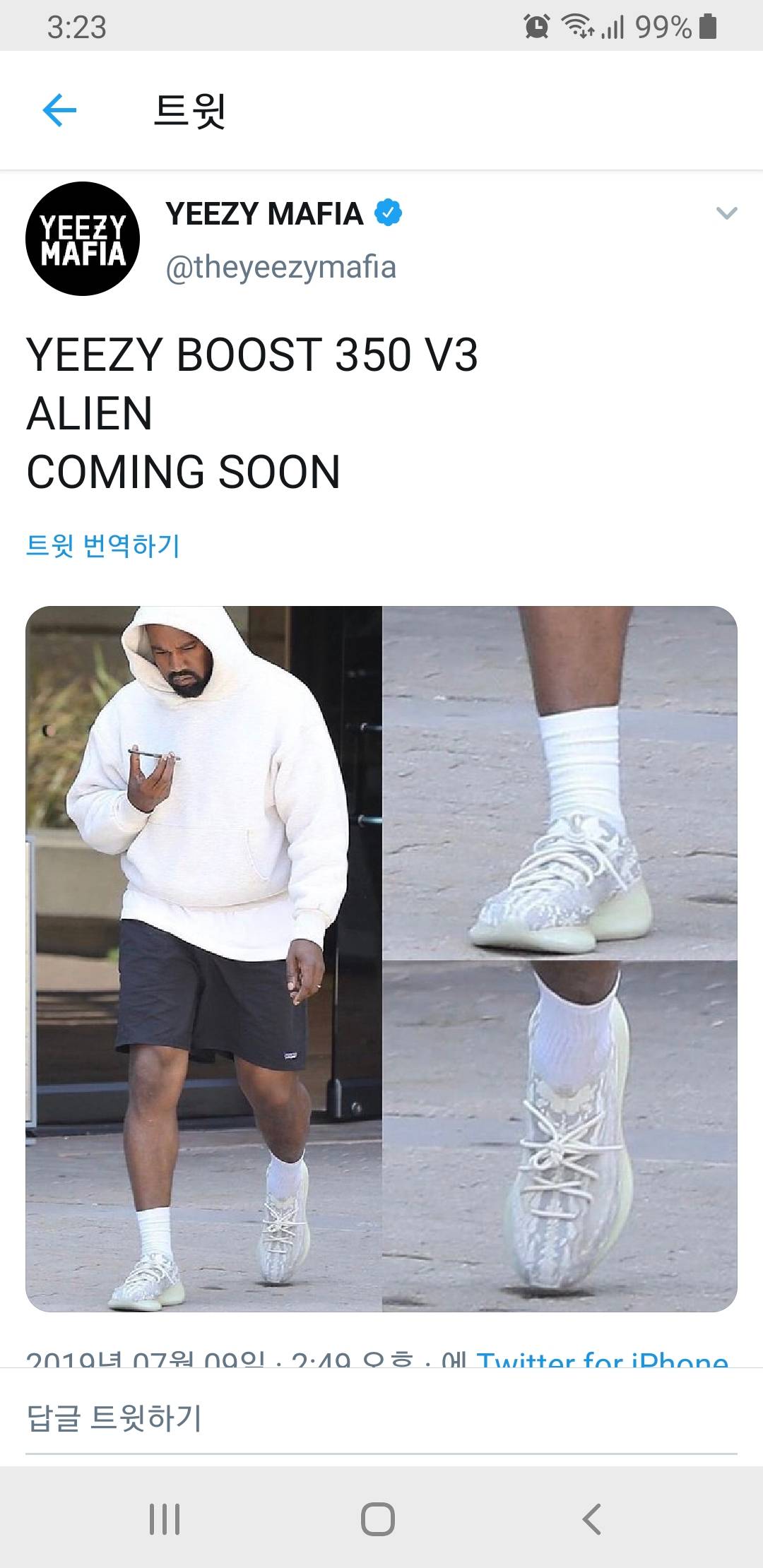 칸예성님 신고 나오셨네