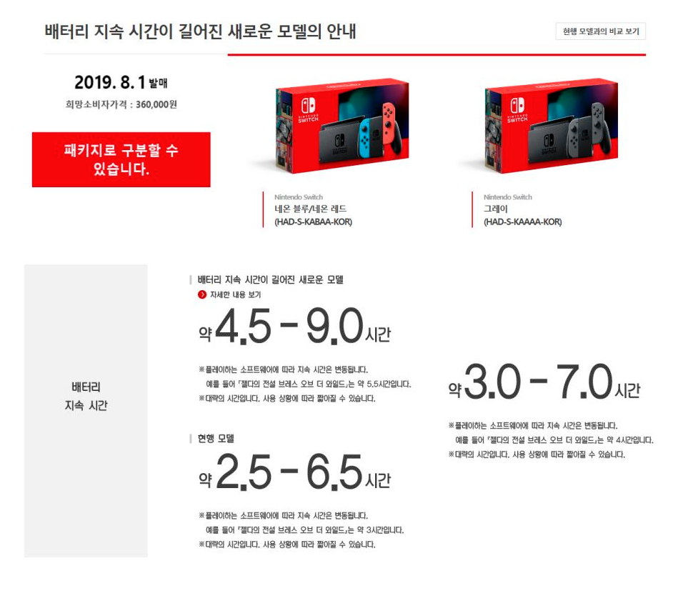 퍼온 출처가서 확인해보니까 오른쪽 3시간짜리는 저번에 올린 스위치 라이트 시간이었네 본문의 신형스위치는 4.5~9.0이 맞음
