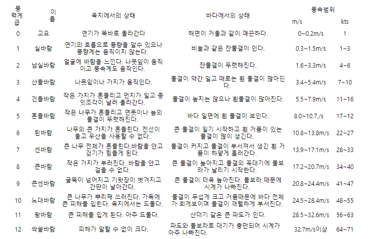 검색해보니까 실바람, 남실바람, 산들바람, 건들바람 순이란다