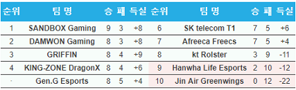 내가말한건 경기력적인 부분에서였음 담원이랑 킹존은 5등안엔 무조건 들어갈듯