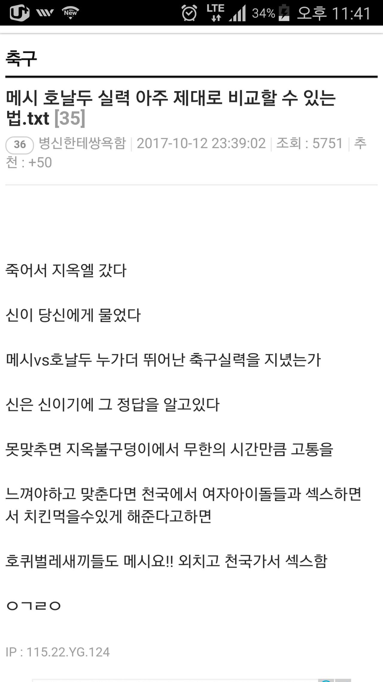 나도 실력은 메시지만 호불호는 날두였는데 이젠 둘다 별로야 ㅋㅋㅋ