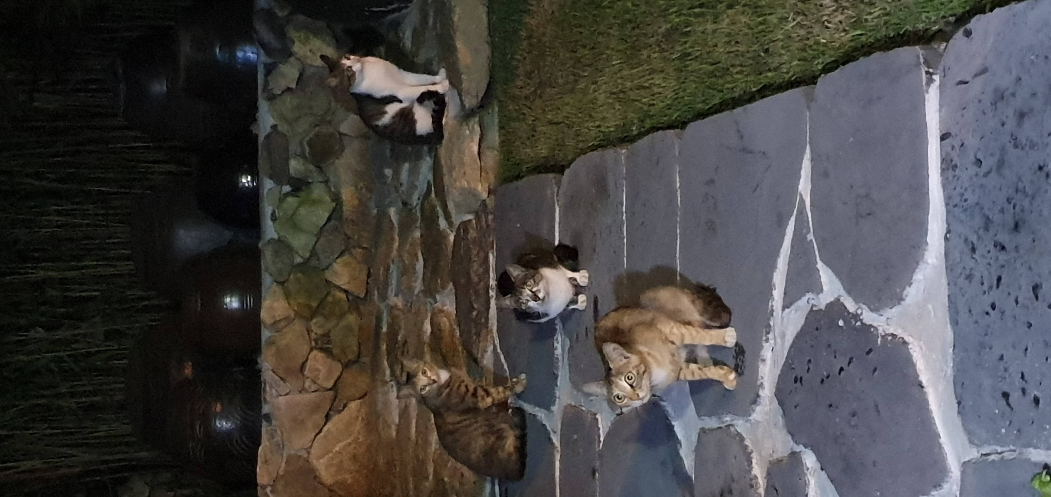 얘넨 고기 궈먹는데 몰려온 동네 고양이들