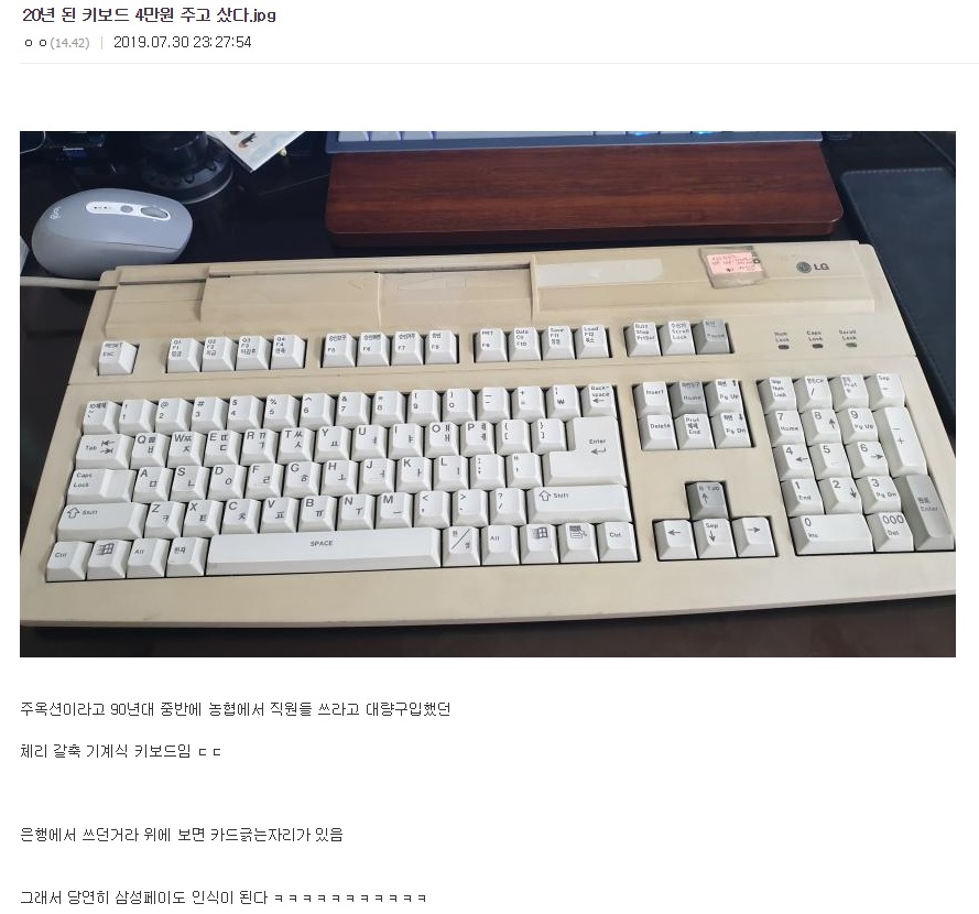 저 키보드가 한때 엄청 팔렸는데 저기 들어있는 체리 스위치가 요즘 것들보다 키감이 좋음 키보드 원래 리얼포스 쓰다가 마제스터치 15년된거 구형 제품 썼는데 키감이 너무 좋은거야? 그래서 알아보니까 그게 구갈축으로 불리고 저 키보드 3~4만원에 사다가 스위치 빼서 커스텀 키보드 제작하던게 유행이었던 적이 있었지
