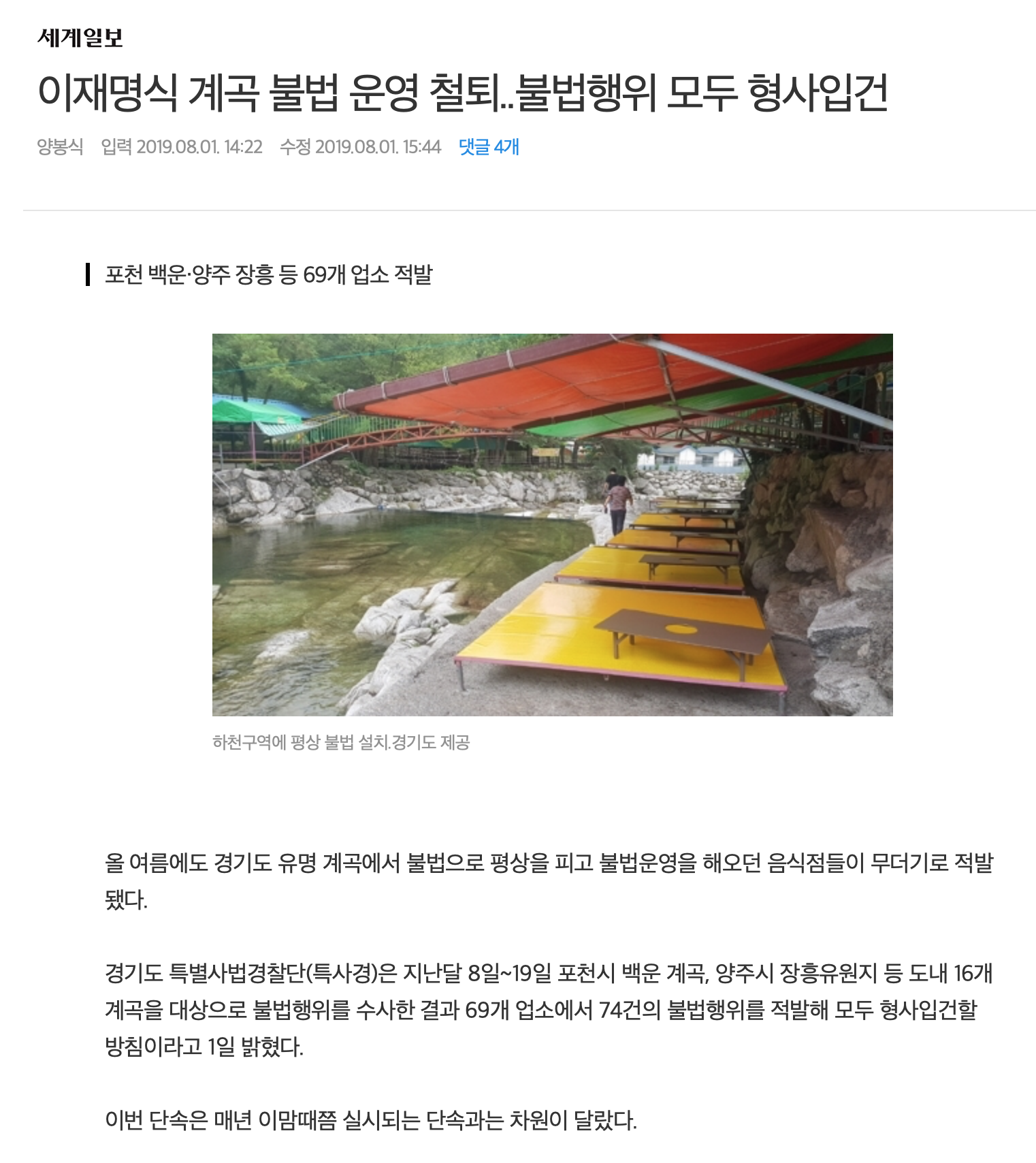 스브스뉴스보면 두세개씩 걸리는 놈들이 있음. 아예 계곡 막아버리고 보 만들고 평상영업하고 해서 한개 이상 걸리는듯
