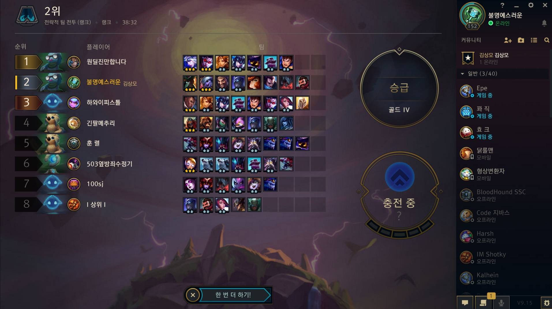 강릉 안갔으면 강등갔을수도있어 골드에 만족하도록 해