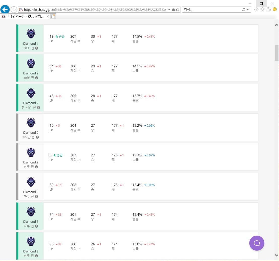 1-1-3-3-4-1-1-1 다3에서 8게임만에 5승 하고 다1까지 올라감.