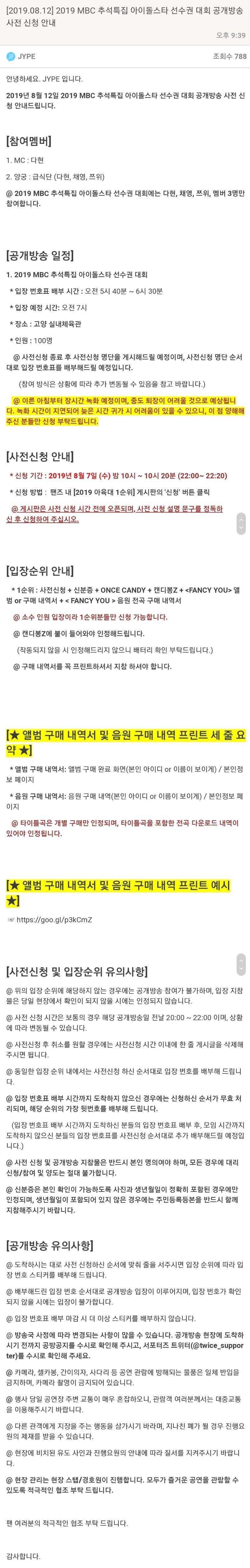 참가 팀들 공카에 응원 참가 관련 공지 올라오는 모양인 듯