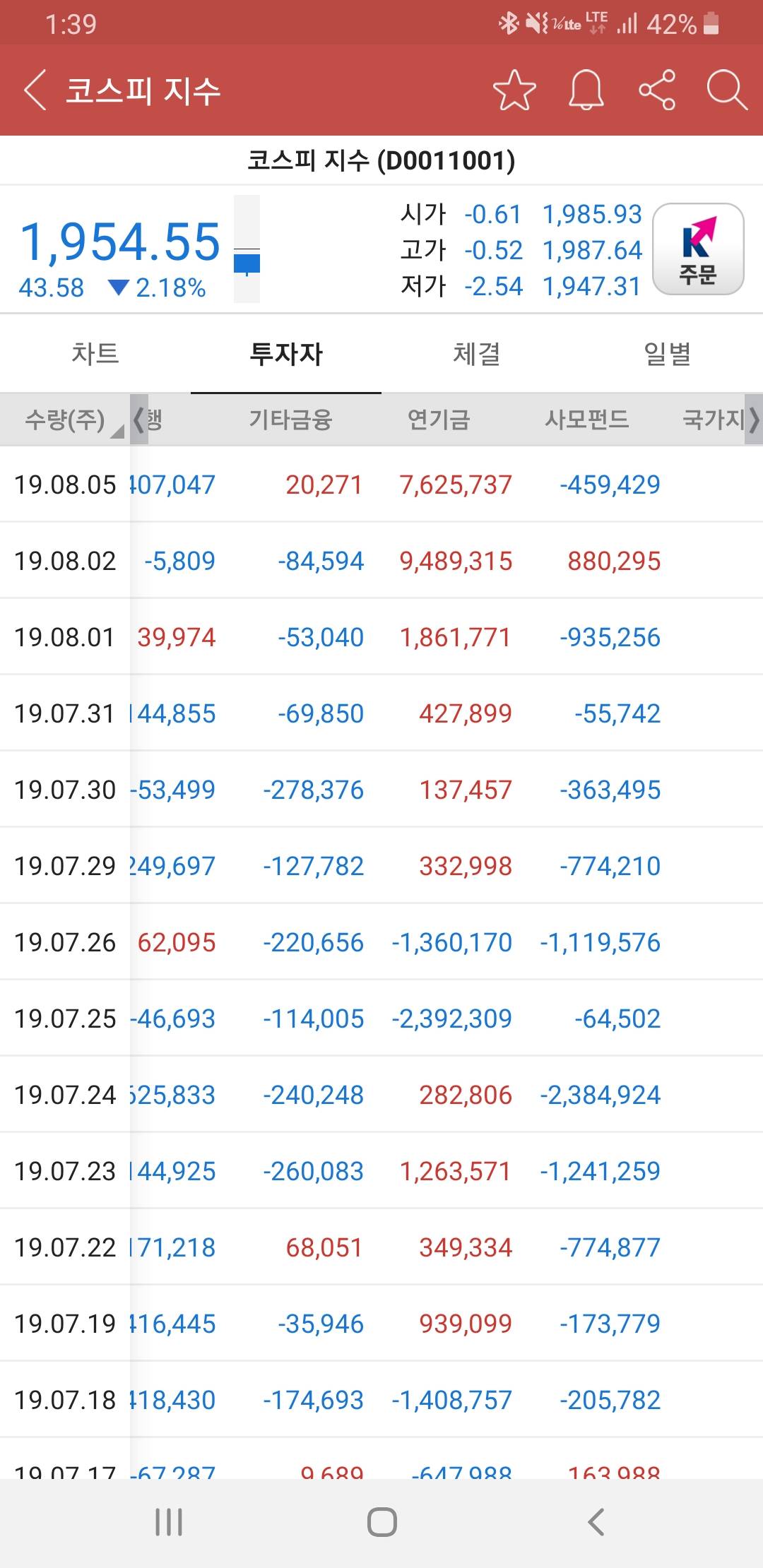 코스닥 외국인은 금요일에 이어 이틀간 -5000가량 빠져나갔네? 저걸 다 기관이 매수해서 방어중인데 저 기관이라는게 정부기관 아니여? 국민연금이라고