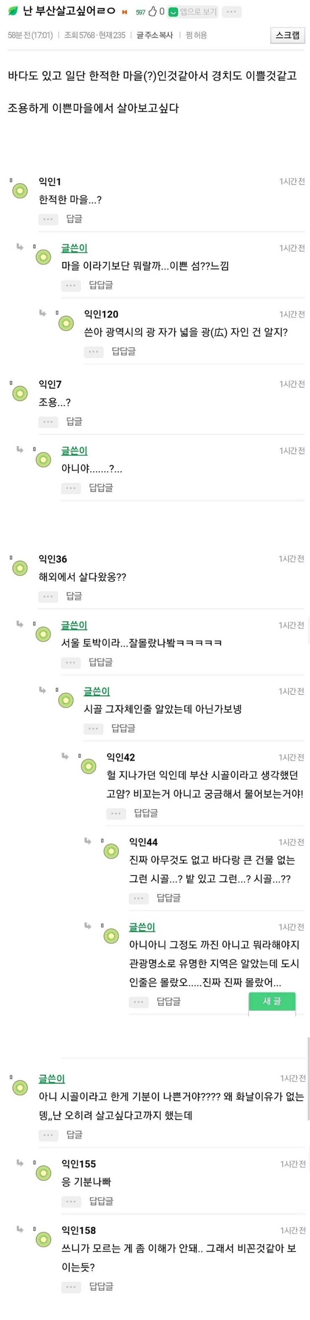 욱하는놈도 병신 부산을 촌동네라고 알고 있는놈도 병신