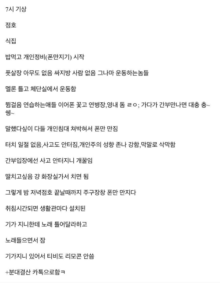 재미없겠다.. 군생활 휴대폰 없어도 될거같던데 탁구치고 축구하고 농구하고 라면먹고 요래도 잘가던데