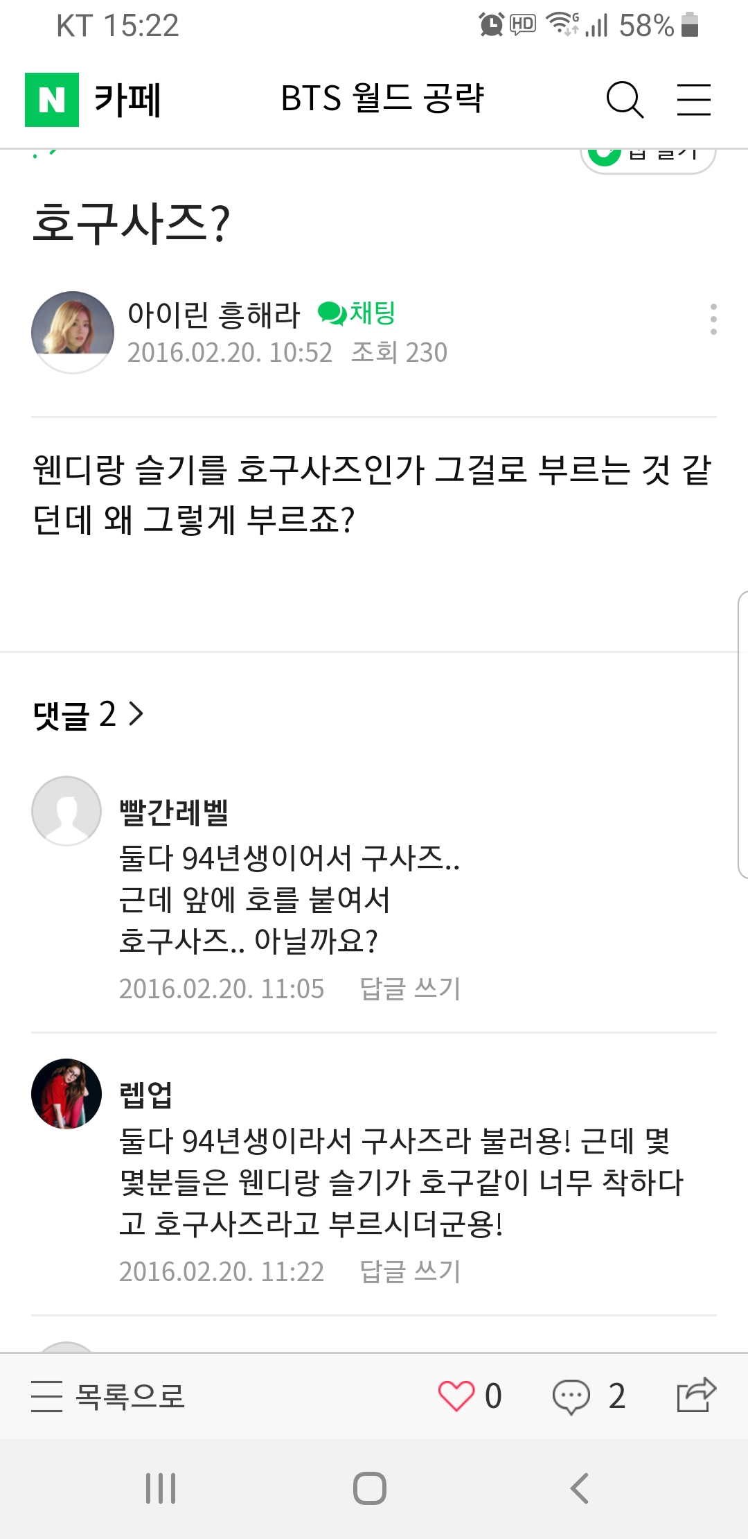 내가 쭉 지켜본결과 슬기랑 웬디는 ㅈㄴ착함 착해서 94년생+호구 해서 별명 호구사즈임