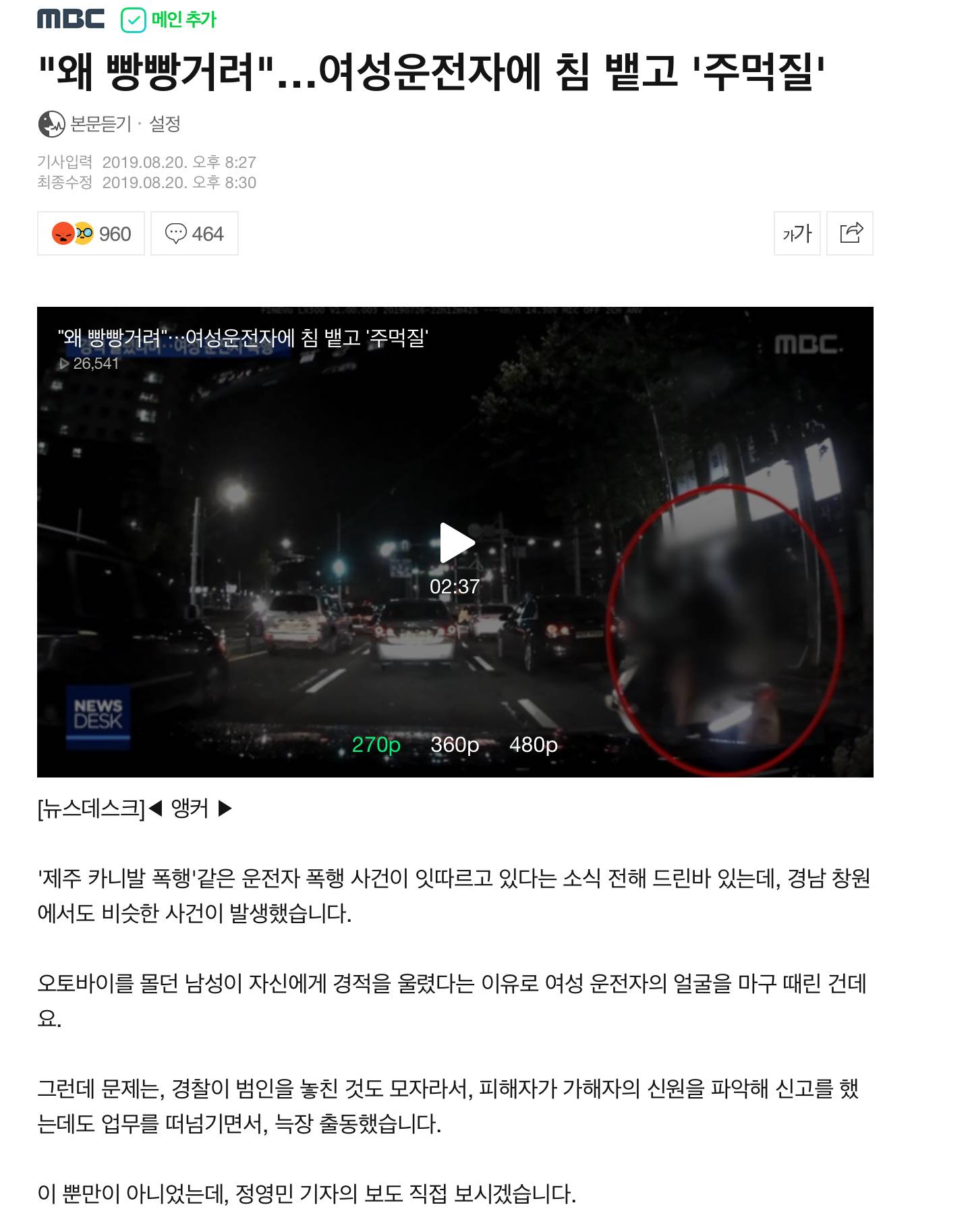 이건 정말 여자라서 당한듯 시발새기 운전자가 건장한 남자였으면 안그랬을거같다