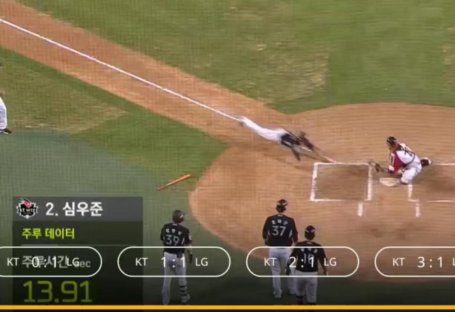 타구 날아가는거 잠시 살핀 이후 뛰었는데도 13.91