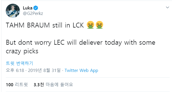 LCK에는 아직도 탐켄치랑 브라움 나오네 (구토) 하지만 걱정마, LEC가 오늘 crazy한 픽들 보여줄테니까