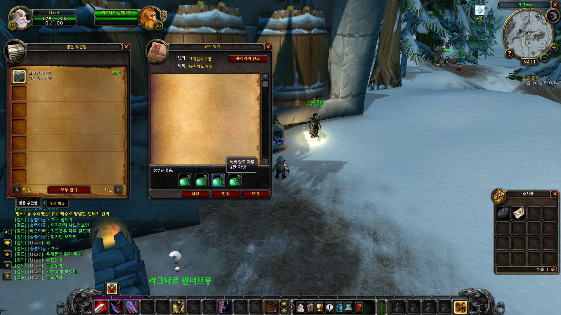 옷감 생기는대로 만들어서 보낸다고 보내는데 어제 오늘 가덤에서 짐승들 잡느라 옷감이 잘 안생기네...일단 모이는대로 만들어서 보내줄게
