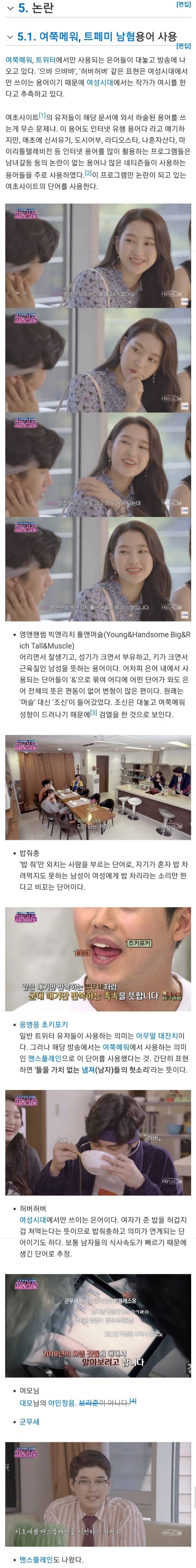 그리고 여시, 쭉빵에서 쓰는 남혐 페미 용어들로