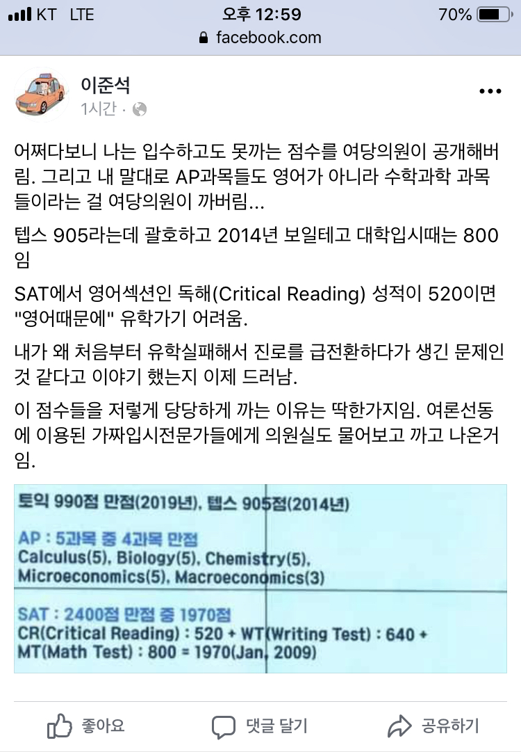 조국 때는 5,6 일반고애들 지림 압도적 1등이 옴 전과목 위에 아무도 없는 새끼